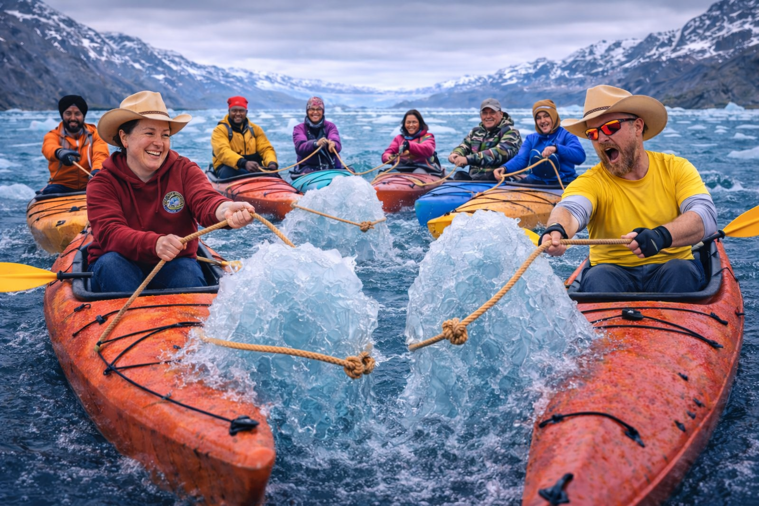“People think icebergs just drift around,” explained senior guide and newly certified Level III Glacier Wrangler Daniel Meuninck. “But with the right technique, and a properly tied lasso, you can coax a perfectly good iceberg into following you back toward the beach.”